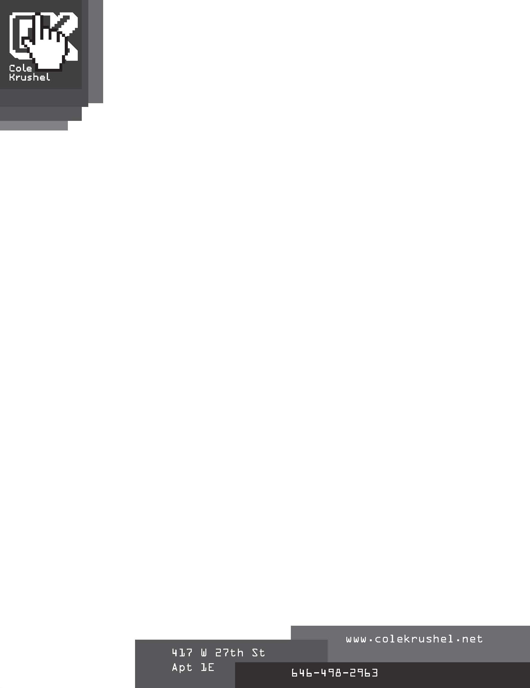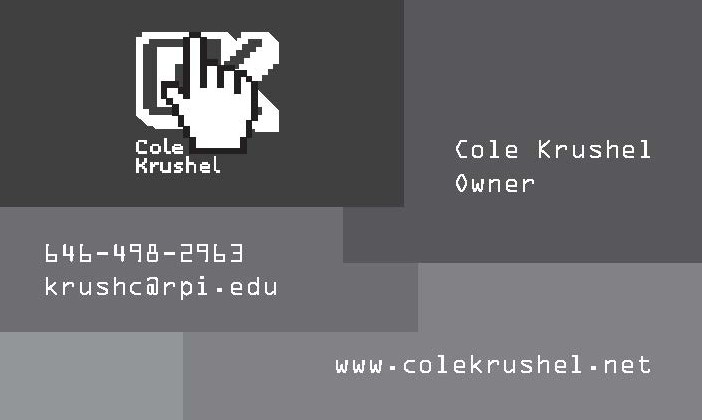 I'm Cole Krushel, a Junior at RPI majoring in Computer Science and Information Technology & Web Science. I love to make interactive software, from games to websites, and I hope this site can give you a good sense of that!
