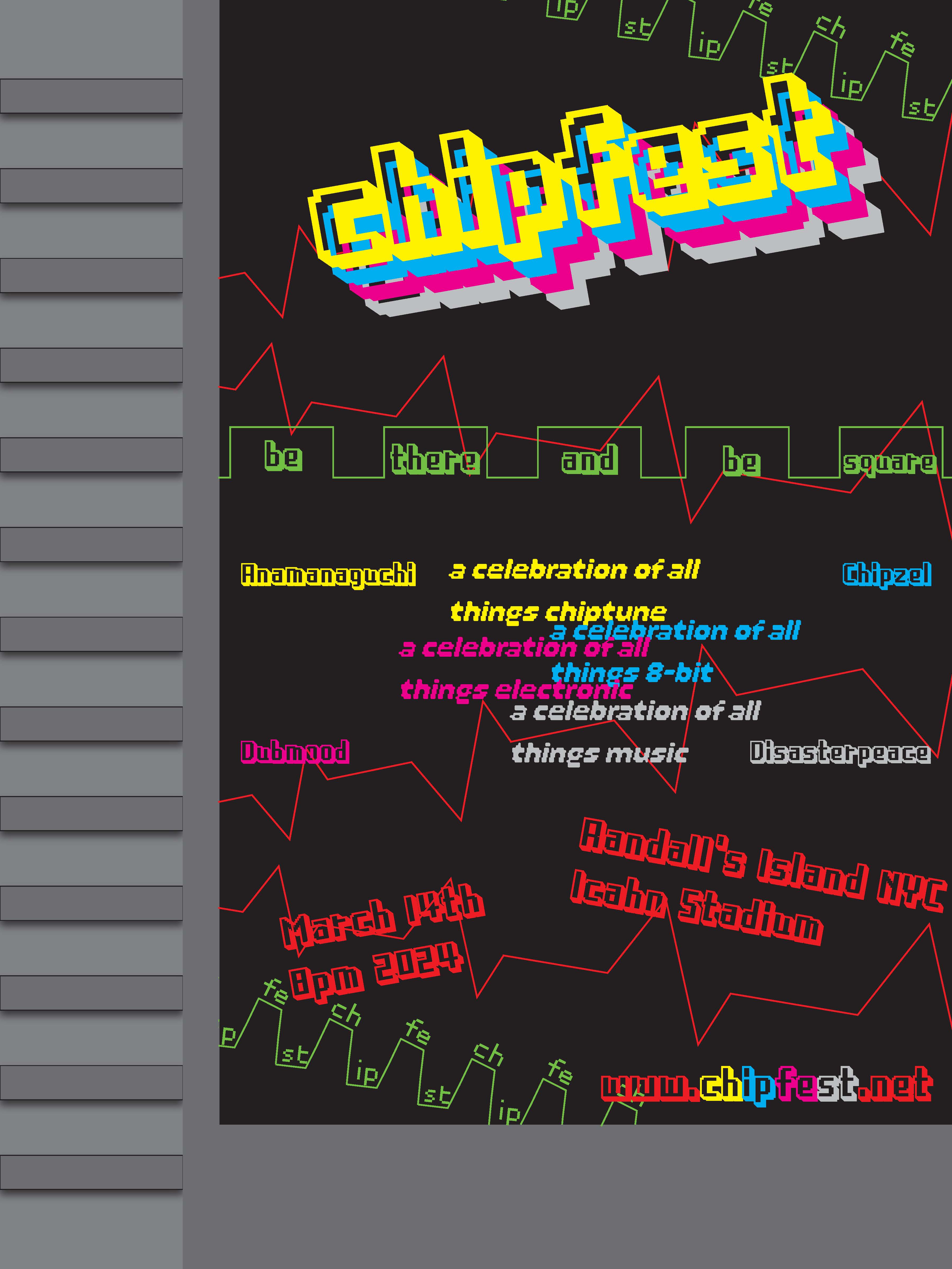 Poster I created in Fall 2024 for Intro to Graphic Design class. The prompt was to create a fake concert poster for a genre of your choice. What can I say, chiptune is an underrated genre.